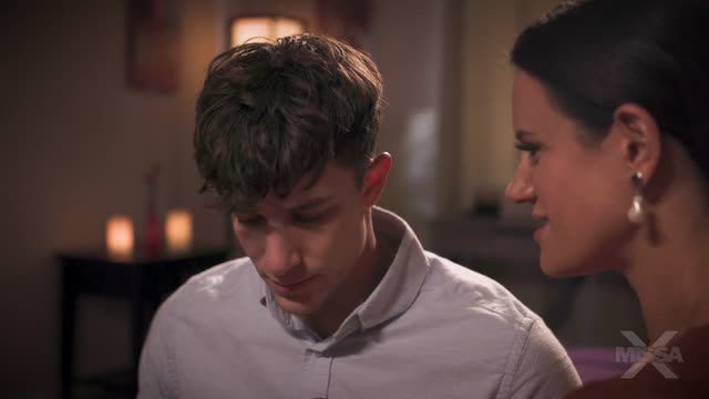 43 year old stepmom Julia North asked her 19 year old stepdaughter Mitzi X to make her come
