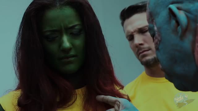The stranger is soon balls deep, fucking his wife in full view while she whimpers and stares into her husband’s eyes, willing him to come and join in. At last, he needs the reality of flesh on flesh and goes over to join them, lavishing his wife with the attention she demands.