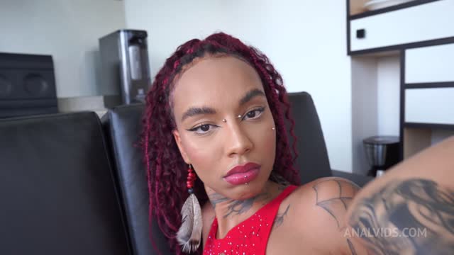 Lara Rouge, Brazilian goth ebony beauty, first time with 2 guys & first double anal (DAPBreakin, DAP, Anal, 2on1, black woman) OB597